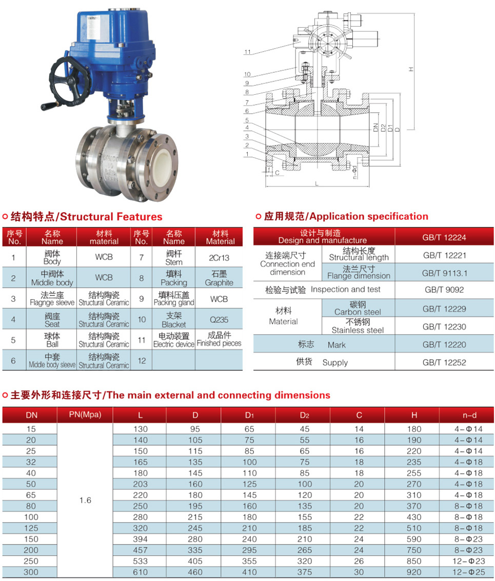 球体采用研磨设备及工艺制造,球圆度精度高、表面质量好、与阀座对研后,利用结构陶瓷的自滑润性,具有很好的密封性能。彻底改变了金属硬密封球阀易泄露、扭矩大、密封面不耐腐蚀的缺点。阀座、球体具有良好的耐磨性、使用寿命长,是钛合金阀和蒙乃尔阀的2-4倍。本阀为三片式结构,可按照GB、JIS、 API等 标准数据制造。